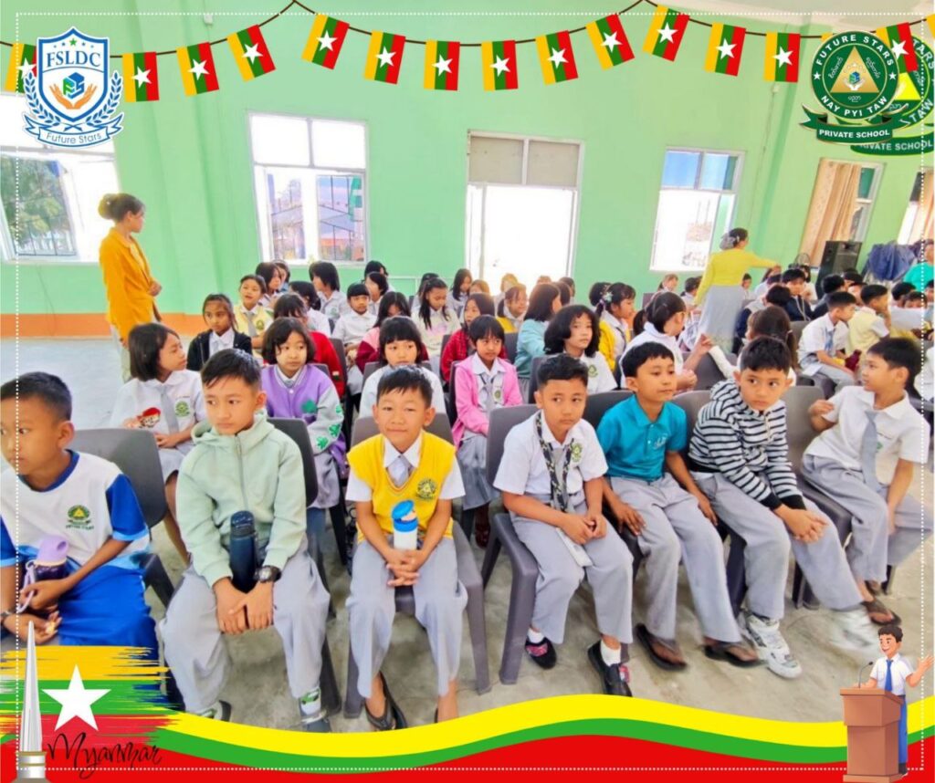 ပြည်ထောင်စုနေ့ ဆေးရောင်ခြယ် ပြိုင်ပွဲ ဆုရရှိသွားသော KG to Grade 5 Class များမှ သားသားမီးမီးများ